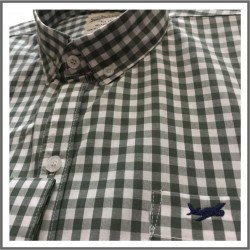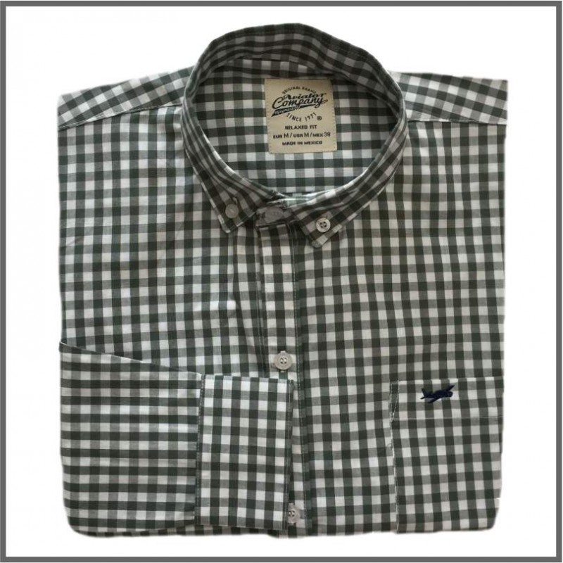 CAMISA MANGA LARGA A CUADROS VERDE OLIVO 100% ALGODON
